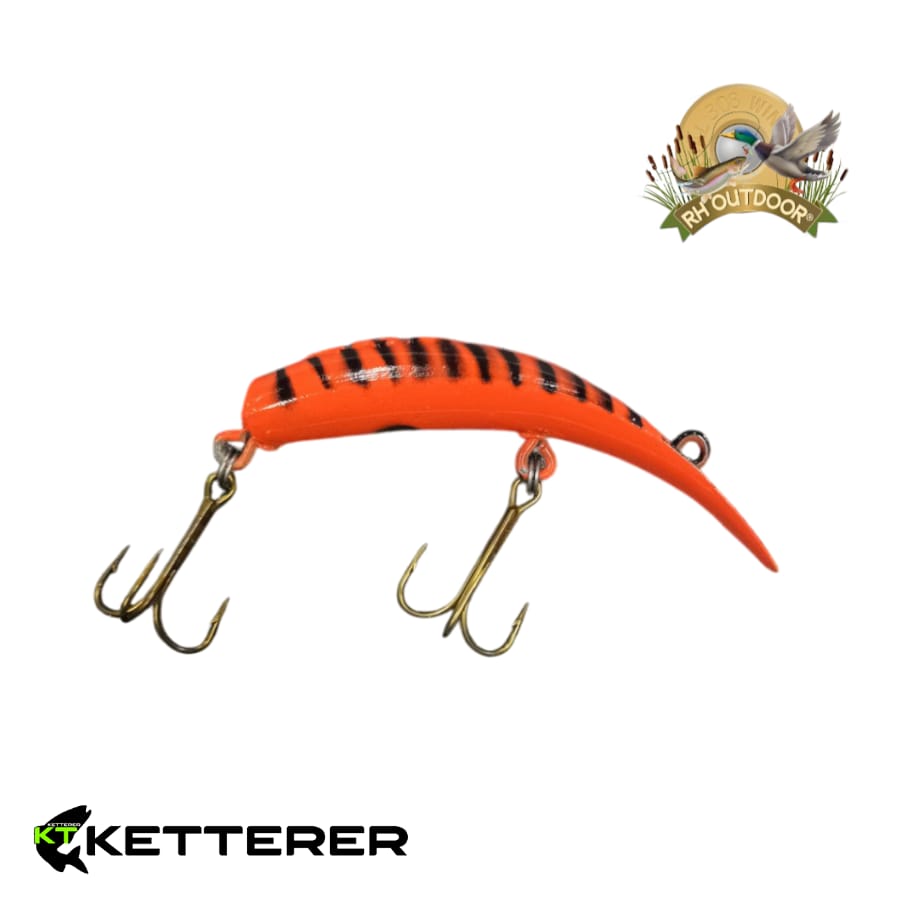 El diseño del Señuelo Esqueleto Naranjo Ketterer presenta patrones de colores naranja vibrantes y realistas, cuidadosamente seleccionados para maximizar su efectividad a diversas velocidades, asegurando una atracción constante tanto en aguas tranquilas como en corrientes más activas.