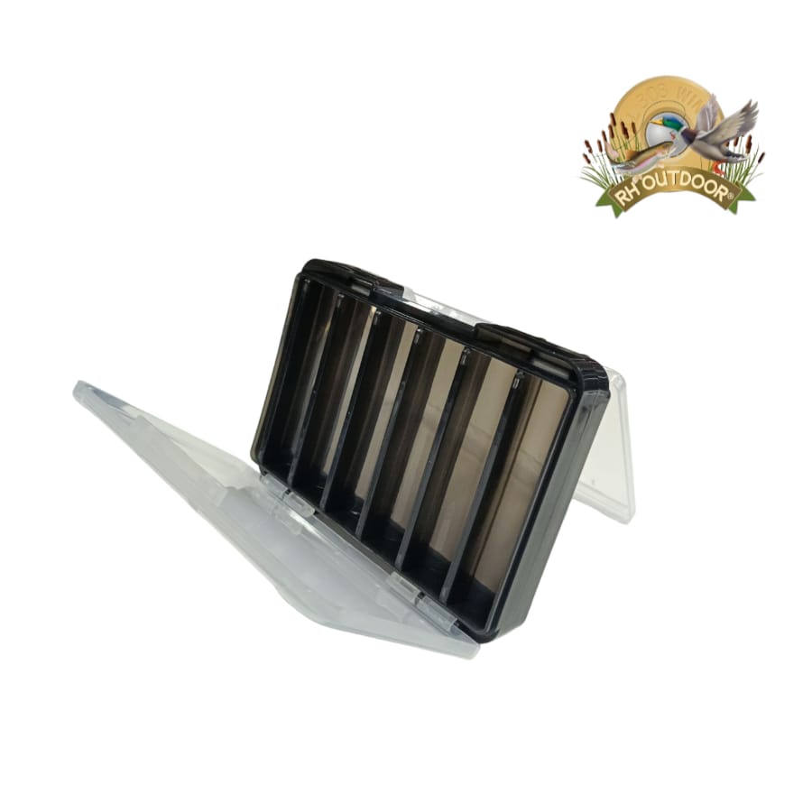 Una caja compacta y liviana para transportar aquellos señuelos de menores dimensiones, que nos entregan esas enormes capturas. Esta caja cuenta on apertura por ambos lados, dandonos el espacio suficiente para almacenar hasta 12 señuelos en ella.