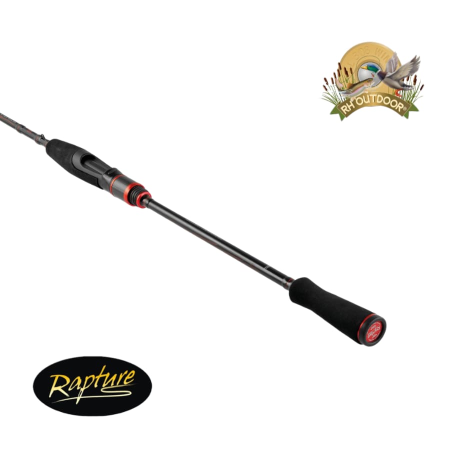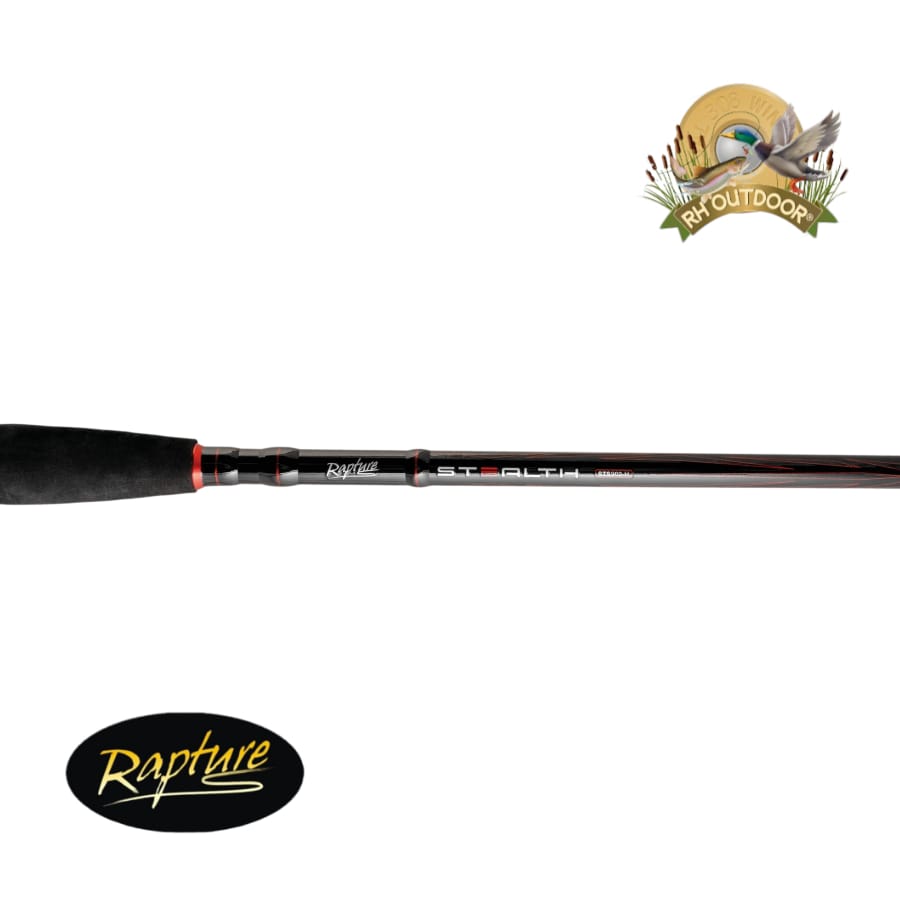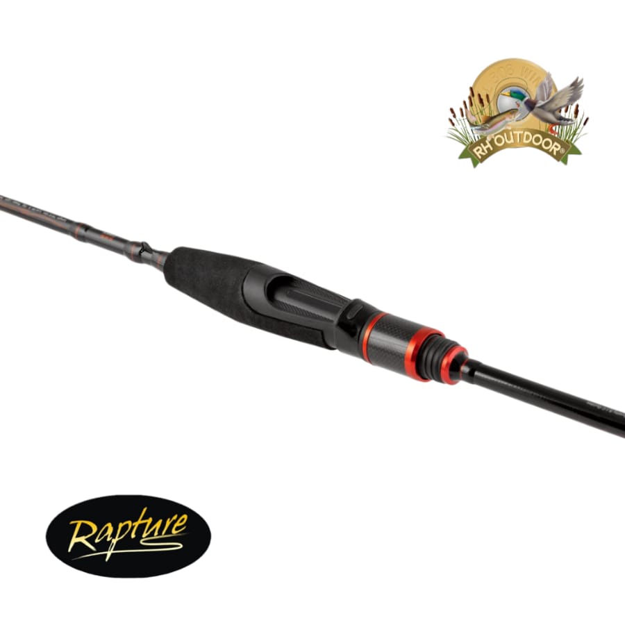 La Rapture Stealth es una caña de spinning versátil. Cuenta con un blank de carbono SHR de alta resistencia y una junta de unión. Empuñadura partida con insertos de EVA de alta resistencia para un mayor control del agarre y una fácil limpieza después del uso. Anillas SiC HD de una sola caña con marco en «V», aptas para usar tanto con monofilamento como con líneas trenzadas. Empuñadura partida con parte delantera ergonómica, que incorpora un portacarretes de rosca de grafito y un extremo de EVA antideslizante y moldeado. Tope de anzuelo de acero inoxidable, finamente atado sobre la empuñadura delantera.