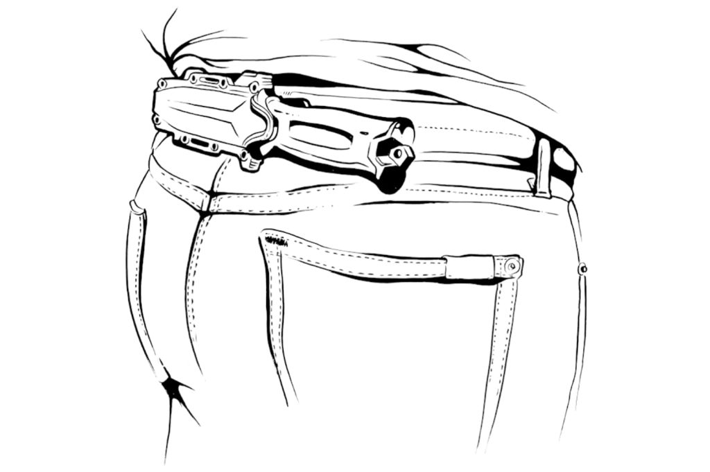 Las trabillas de la funda son completamente desmontables, lo que permite llevarla de forma horizontal y discreta a lo largo de la cintura.