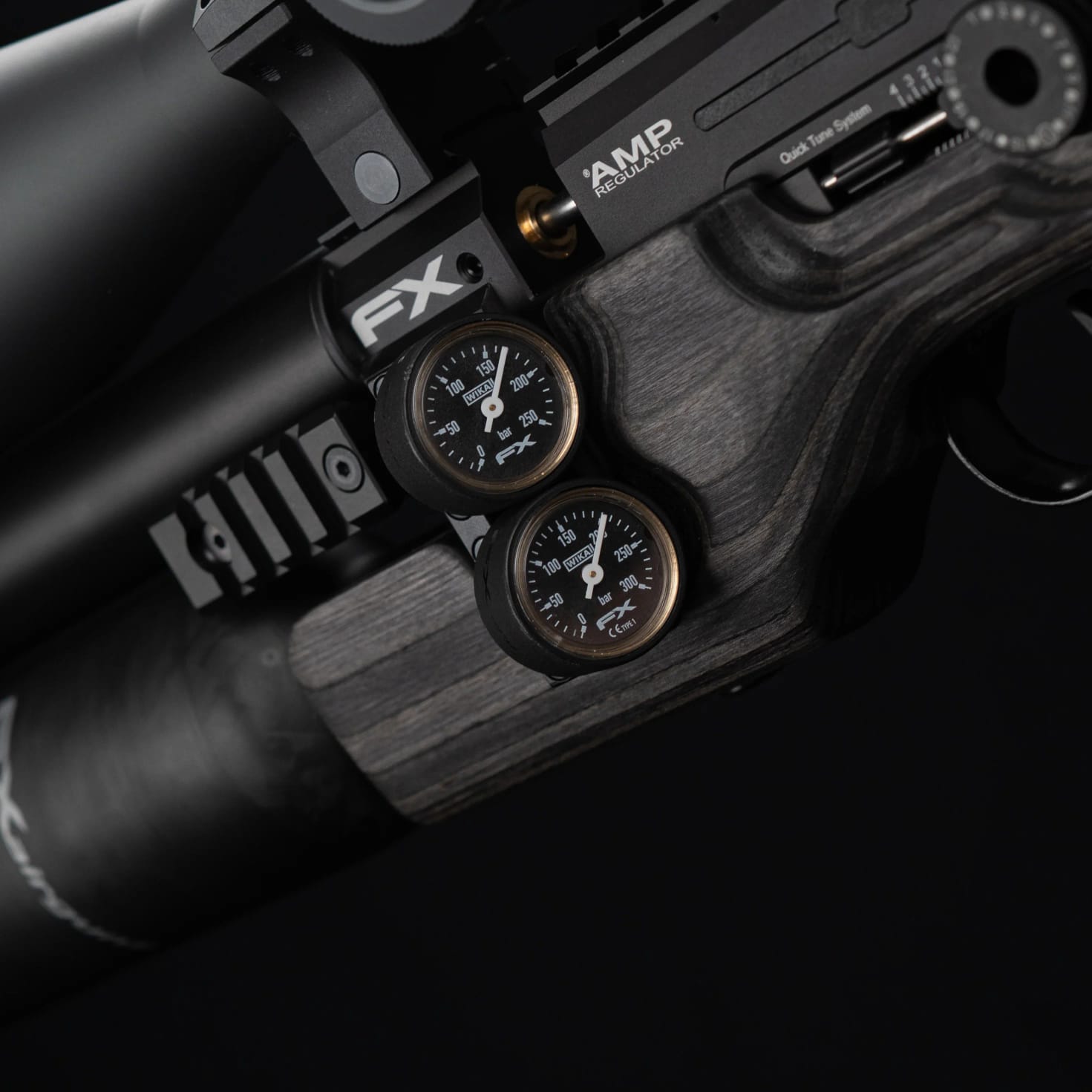 Manómetros Wika de alta precisión y doble ángulo para controlar la presión de la botella y del regulador. Así, podrá controlar ambas presiones mientras dispara, incluso desde el hombro. Todo para que no se pierda ese disparo tan importante.