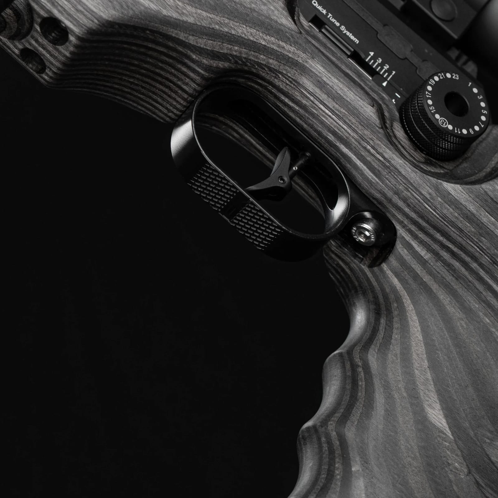 Es imposible imaginar un arma tan potente como el FX King sin la posibilidad de ajustarlo a tu gusto. Por lo tanto, el sistema de ajuste rápido era imprescindible y está perfectamente integrado en la culata ergonómica del rifle GRS. Los ajustes son rápidos, repetibles y precisos.